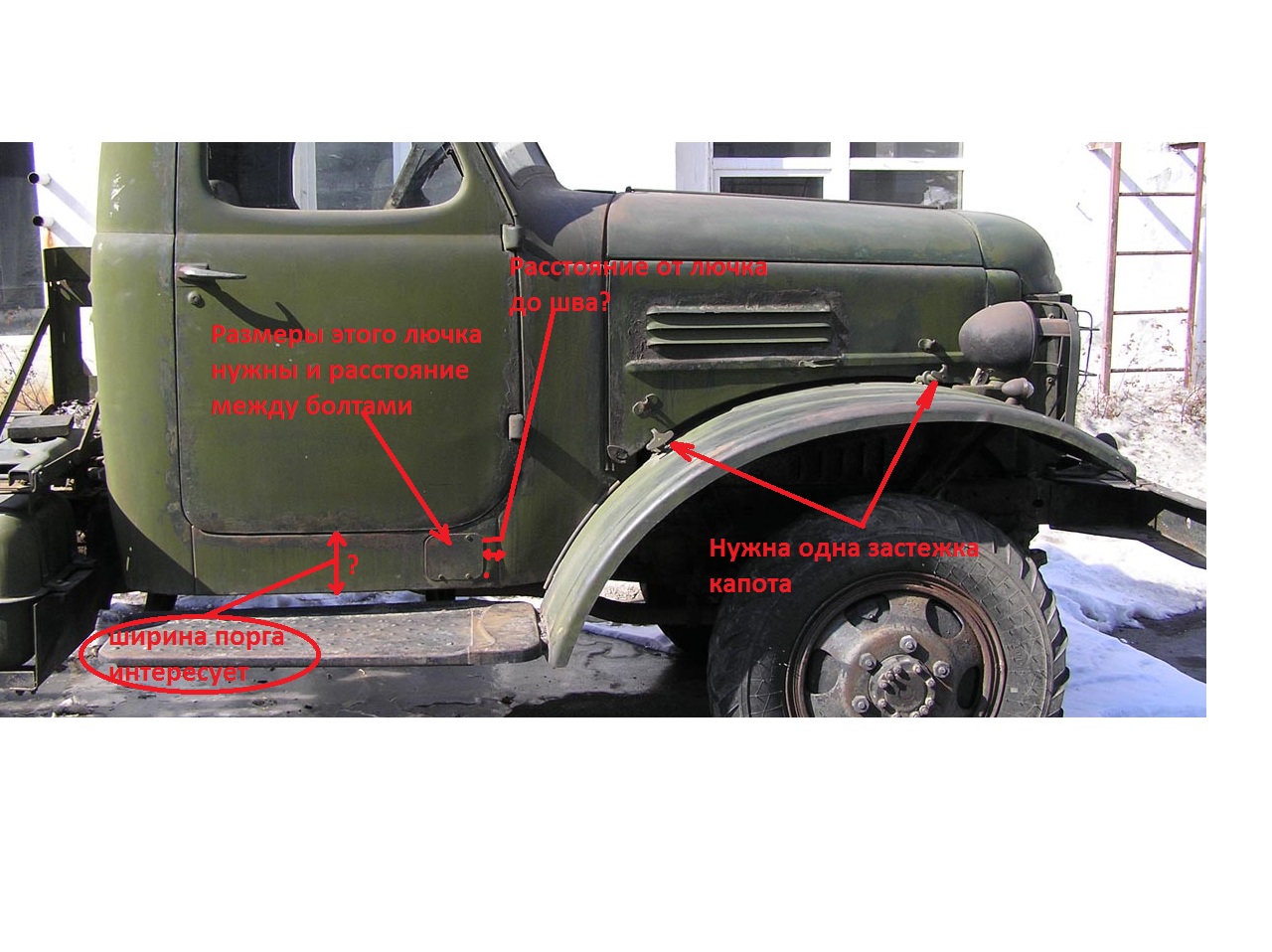 Александр, спасибо большое! Сегодня созвонился с владельцем 151-го, он его на Авито продает. Пообещал в выходные дать точные размеры лючков, расстояния между болтами и расстояния до шва.m1609 писал(а):Широкий порог - 150мм;узкий - 100мм.(По размеру,указанному стрелкой на фото)За 100%точность не ручаюсь,т.к. проём двери не ровный.По лючкам не знаю.