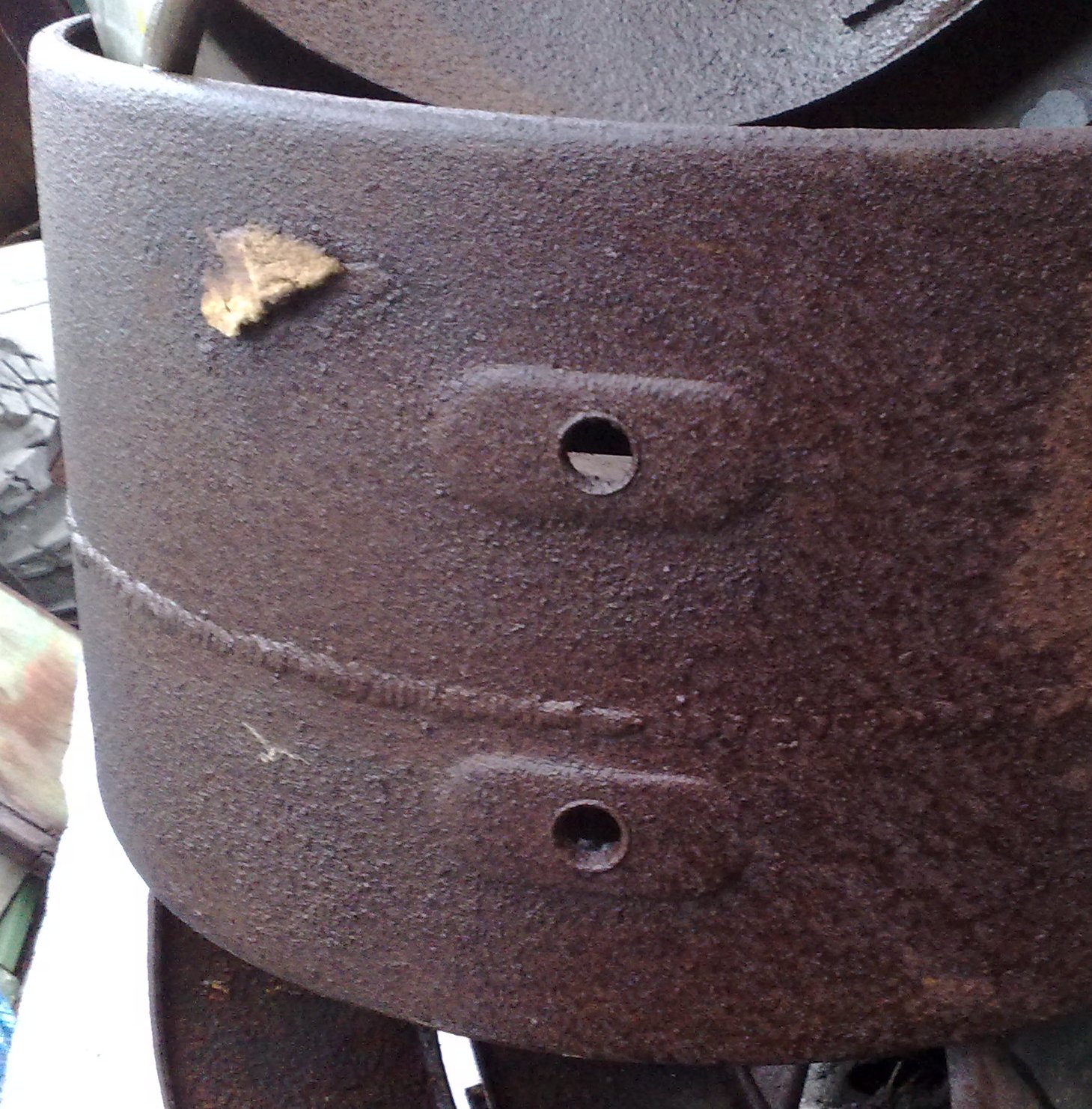 А начиналось все с колес от БТР. Перед - размер 340 х 457 - диски - от ГАЗ 66 - разборные - взяты внутренние широкие половинки. Зад резина от БТР - тяжелая - шириной 400 мм наружный вроде 1065 мм, посадка 457 мм - диски - от ЗИЛ 157 разборные - использованы внутрянняя половинка без переделки и внутренняя половинка с вырезанной сердцевинкой и выбитыми болтами.